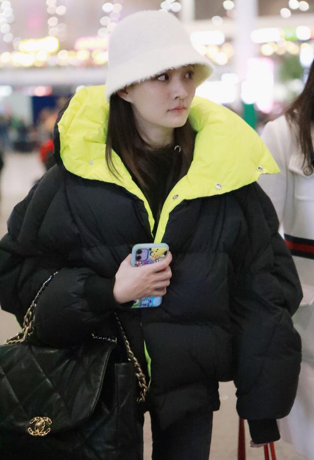 黑色羽绒服,在冬天一抓一大把,一不小心就淹没在人群中。这时候,我们选择从细节入手,说不定就有意外的吸睛效果。像徐璐这件黑色羽绒服,超大的荧光绿领边,就是一个很好的吸睛设计,一下子便能抓住眼球。内搭黑色打底,凹出舒适保暖不乏时尚感的日常穿搭。