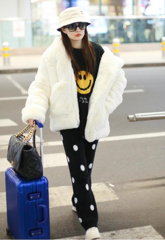 徐璐现身机场,身穿一件白色的皮草外套加上黑色的打底服装,看上去显得比较暖和,同时也会让人觉得有一种贵气的感觉。在服装的整体颜色上主要是以黑、白两种颜色为主来进行搭配,看上去会显得相对的简洁一些。