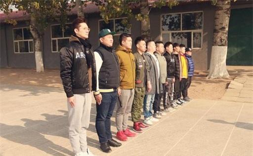 下图就是谢金、张鹤伦等人站成一排,接受教官军训的样子。