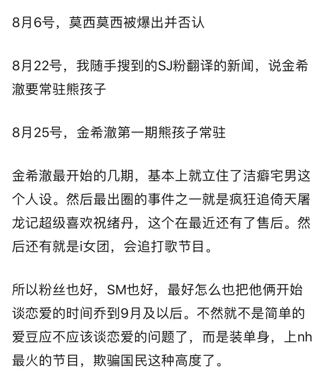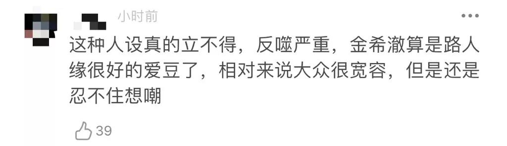 而且在恋情爆出之前,金希澈的风评是很好的,但这次姐嗅到了点人设反噬的味道。