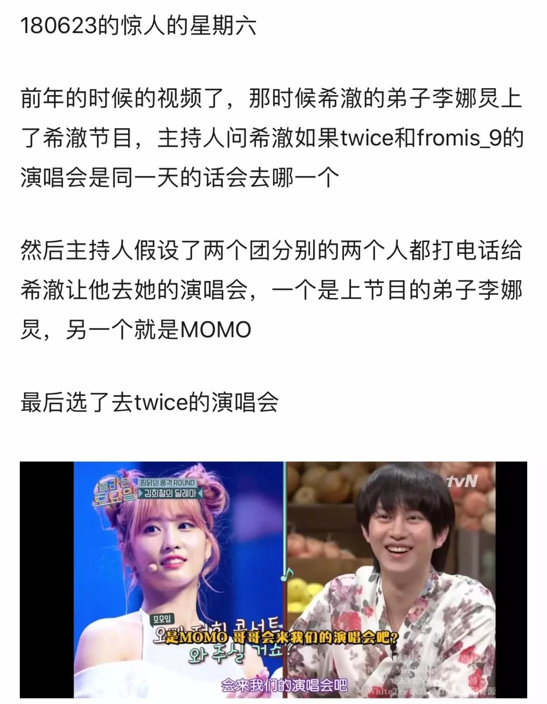 18年的综艺,被问到twice和fromis_9的演唱会去哪个,金希澈选了twice。