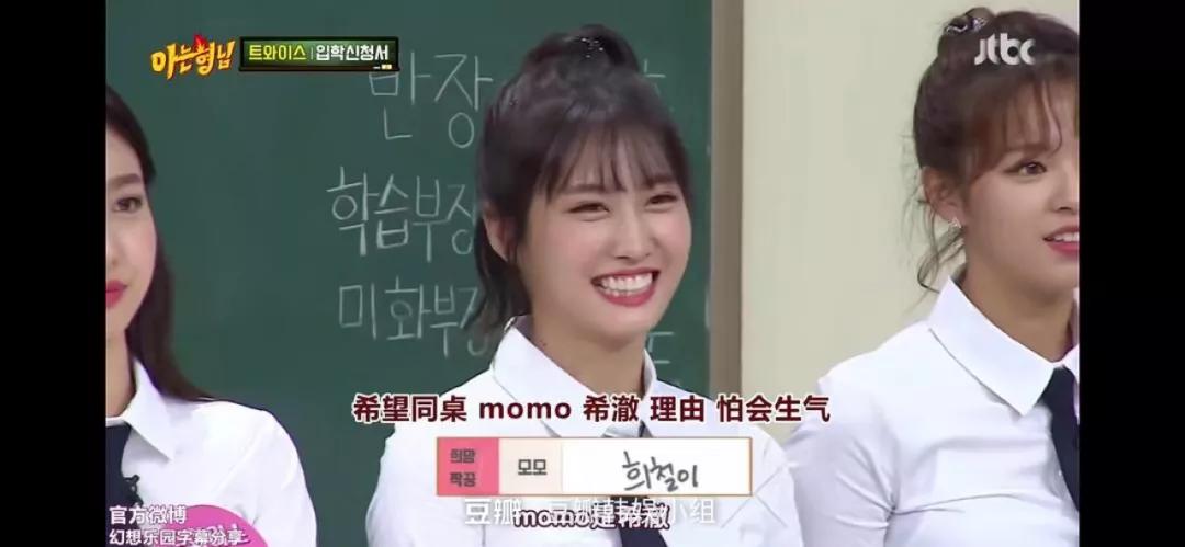 twice上认哥的时候,momo被问到想跟谁做同桌,回答的是希澈原因是怕不选希澈希澈会生气。
