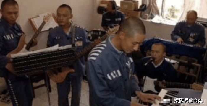 从其爆料的照片来看,六名男子都剃着寸头,一位疑似李天一的人占据c位,正专心弹奏电子琴,其余五人或弹吉他或敲架子鼓,“狱中乐队”装备非常齐全。