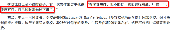 某次一家人上访谈节目,李双江还动情表示,每当李天一犯了错,自己想动手打他的时候,“还没有打,自己的眼泪先掉下来了”。