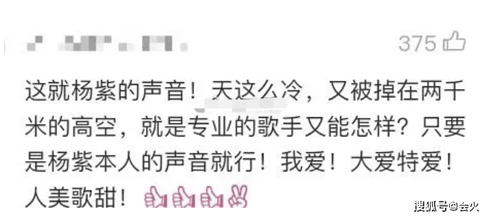 有网友在论坛发帖称,杨紫的跨年给网友贡献了开年第一个笑料。从杨紫粉丝的发言来看,杨紫当天居然是被吊在2000米高空唱的歌!不少粉丝纷纷感叹杨紫的敬业和不易。