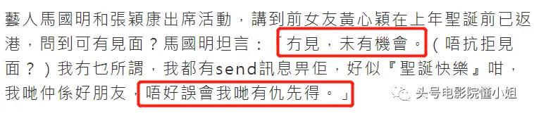 前几天他出席活动,被问到黄心颖返回香港的消息时,他坦言没有机会见面,但依然在节日发信息问候,还大方表示自己和黄心颖之间没有仇。甚至,对黄心颖的新剧,马国明也是持支持态度,认为大家没必要因为一个人否定整部剧。