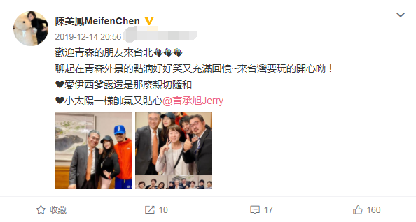 而后也是此次晒出于言承旭合影的陈美凤,在个人社交账号上晒出与言承旭的合影,并表示言承旭贴心的祝自己生日快乐,每年总是令人很感动等等。