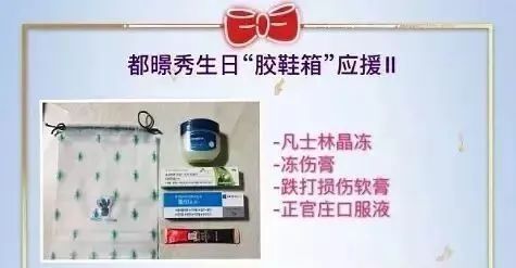 胶鞋之外还送了凡士林晶冻,冻伤膏,跌打损伤软膏,正官庄口服液。