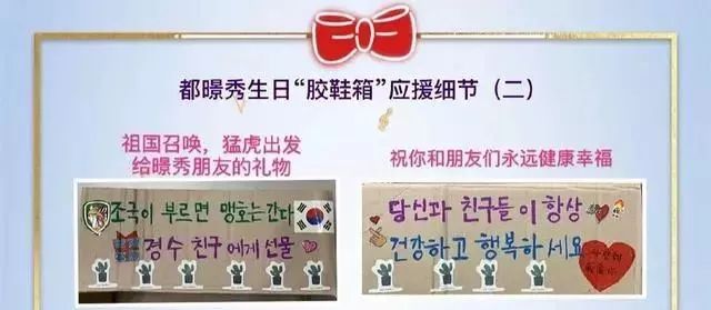 粉丝对韩国文化也很了解,知道等待男友的女友会在一些重大节日为他准备胶鞋,于是乎她们给爱豆准备了。