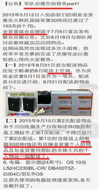 金贤重的粉丝们更是蠢得可怕,给金贤重以及他的战友们送过电脑、团体T恤、空调等等等。
