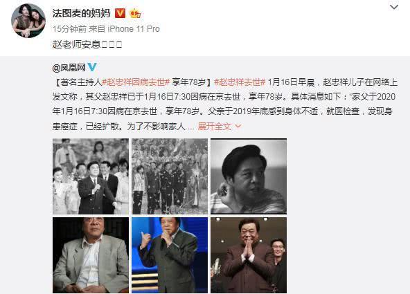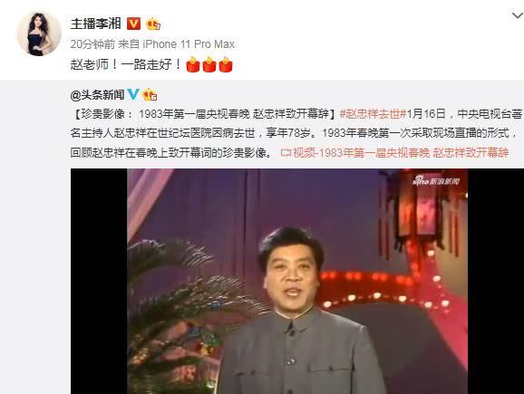 李湘当年是湖南卫视的一姐,主持快乐大本营圈粉无数。李湘一直很喜欢赵忠祥老师的节目,在微博上悼念赵老师,还发了三个蜡烛,可见悲伤之情。