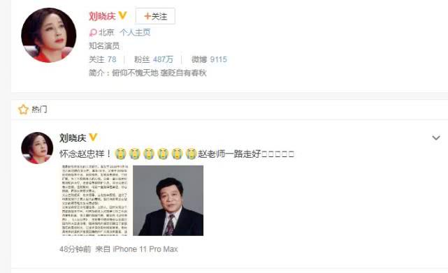 刘晓庆是赵忠祥多年好友,想当年在央视春晚还做过主持,和赵忠祥有很多共同语言,这次赵老师离世,刘晓庆十分悲痛,语言根本无法表达。