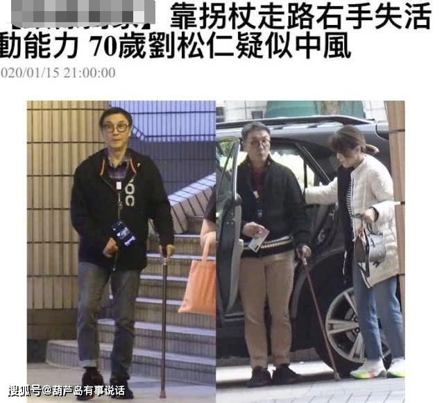 报道称,刘松仁身形消瘦,走路时右脚无力要靠拐杖支撑,而右手一直紧握拳头,食指和小指不能完全弯曲,因此怀疑他中风。