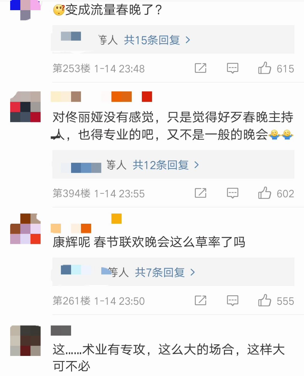根据调查显示,争议声最高的人就是佟丽娅。大家并不是拒绝春晚主持团换新人,但一下子换掉那么多"老人",甚至还要加一个不专业的演员进去,观众一时之间都无法接受。春晚主持人的素养要求非常高,佟丽娅一没有主持人证二没有过普通话一甲,怎么看都不是合适的人选。