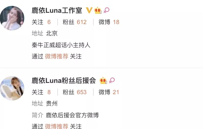 吴亦凡的这位绯闻女友也迅速被扒出,其微博账号为“鹿依luna”,本名为秦牛正威。