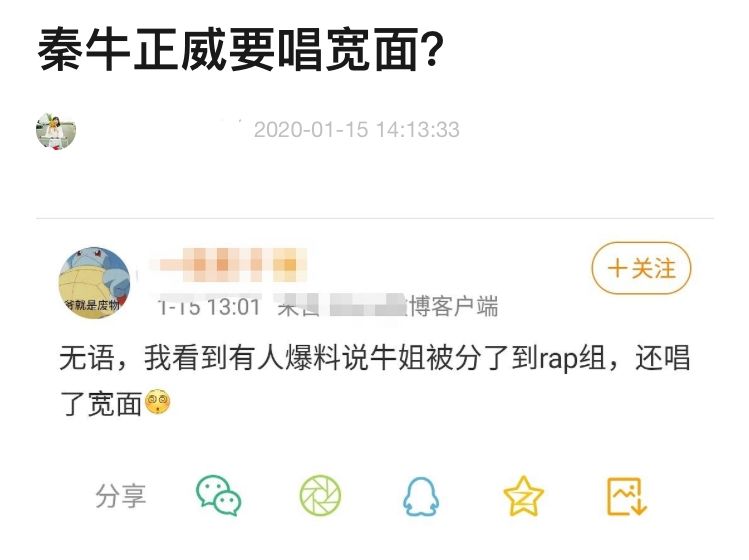 随后有网友在秦牛正威的微博下问她是不是要去参加选秀,秦牛正威直接回应:“我来告诉你,都不去”。