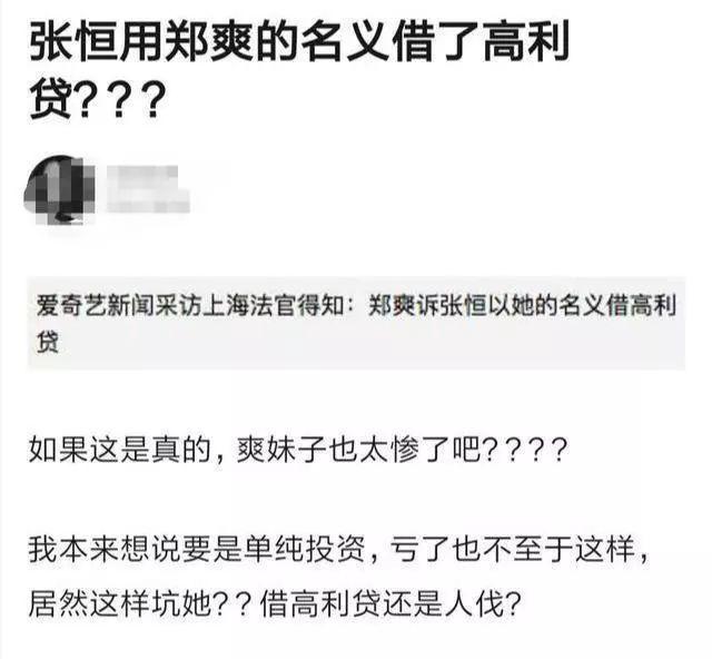 马上第二天就有媒体爆料称张恒在与郑爽恋爱期间,以郑爽的名义偷偷借了高利贷,这才是导致两人闹崩的原因。