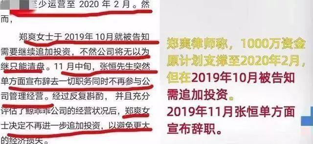 而郑爽把原因也说得很清楚,就是因为2019年年初郑爽在和张恒合作的公司投入了一千万,原定于2020年2月用完投资款,结果在2019年10月这笔钱就用光了,而张恒也于11月单方面宣布辞职,去向不明。