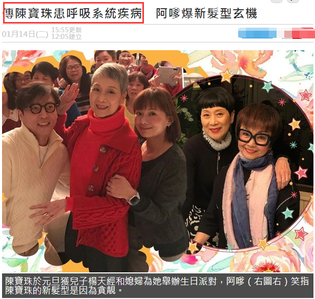据悉,1月15日有香港媒体报道73岁的陈宝珠因为患上了呼吸系统的疾病,需要长时间的治疗,所以就取消了原定于今年的一些演出。