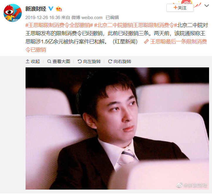 而此事在沉淀快两个多月后,王思聪终于通过渠道还清部分债务后,其限高消费令才得以被取消,尽管当时外界一度猜测是其母亲出手,但不管如何,当王思聪“老赖”的身份不再后,大家也是预感到曾经的“国民老公”可能即将再度回归。