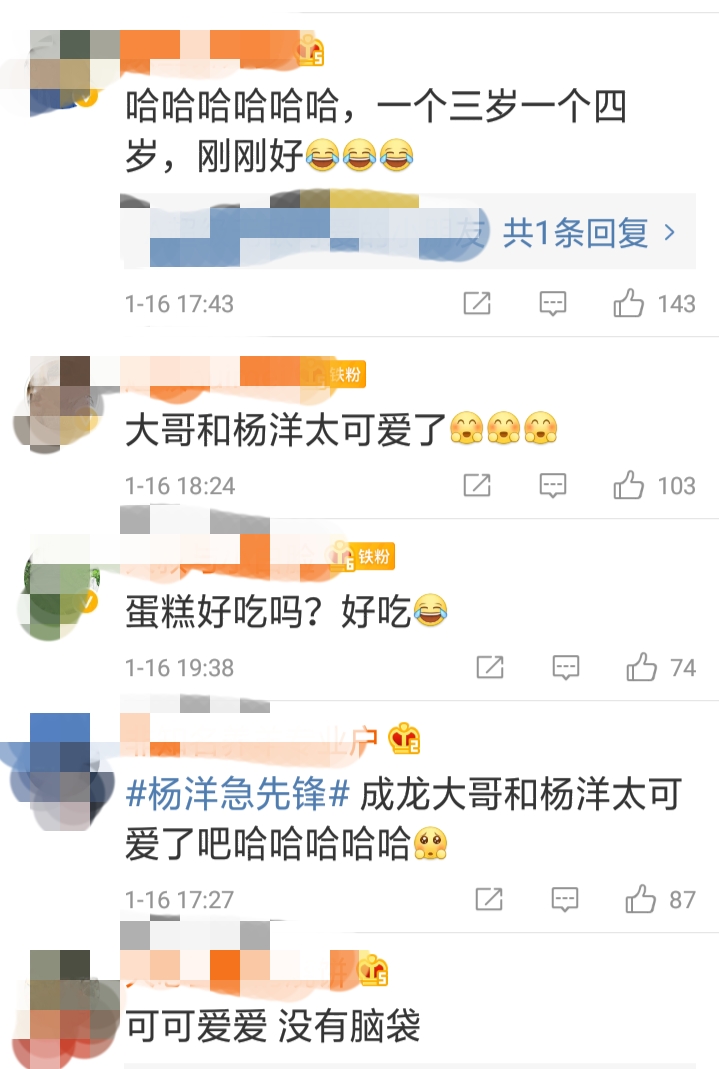 此刻网友就说道,看出来了,蛋糕挺好吃的;一个三岁一个四岁,刚刚好;大哥和杨洋太可爱了吧等等。