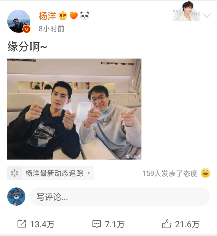 并且在发布会结束后,杨洋还发了微博,文字写到“缘分啊”,配图是他与大哥的合照。