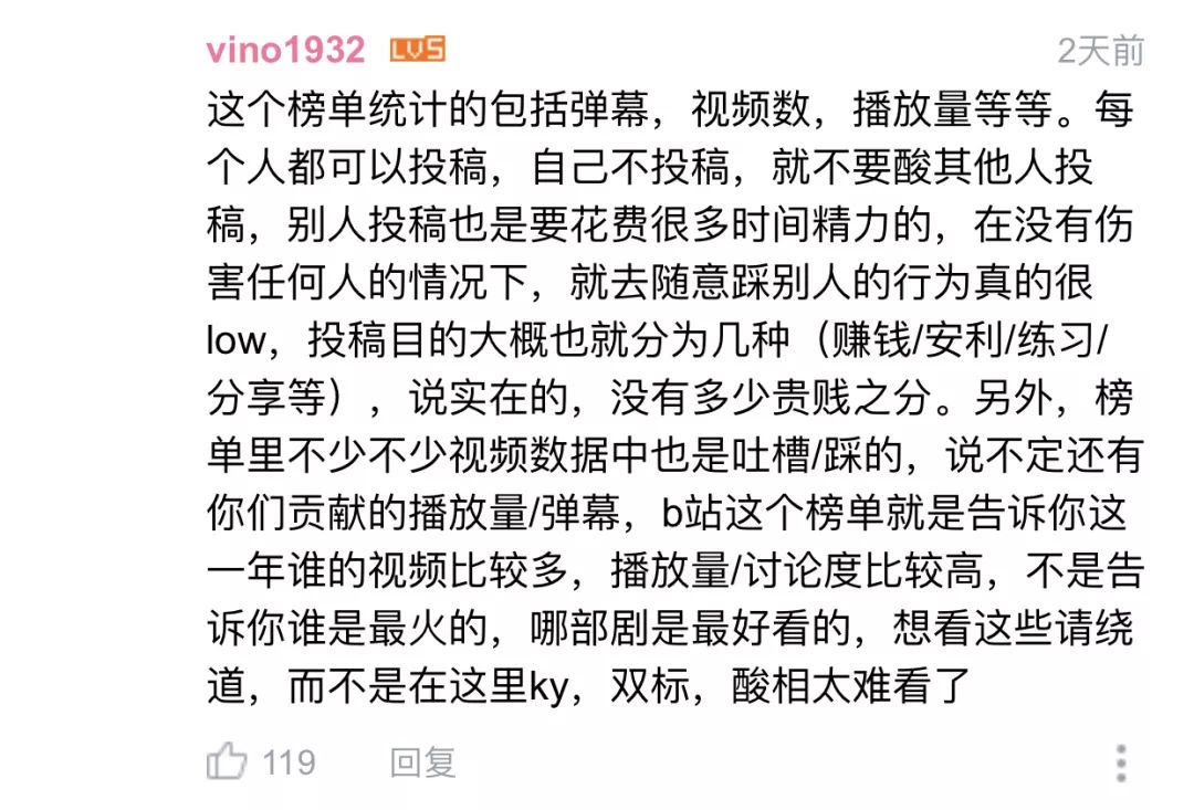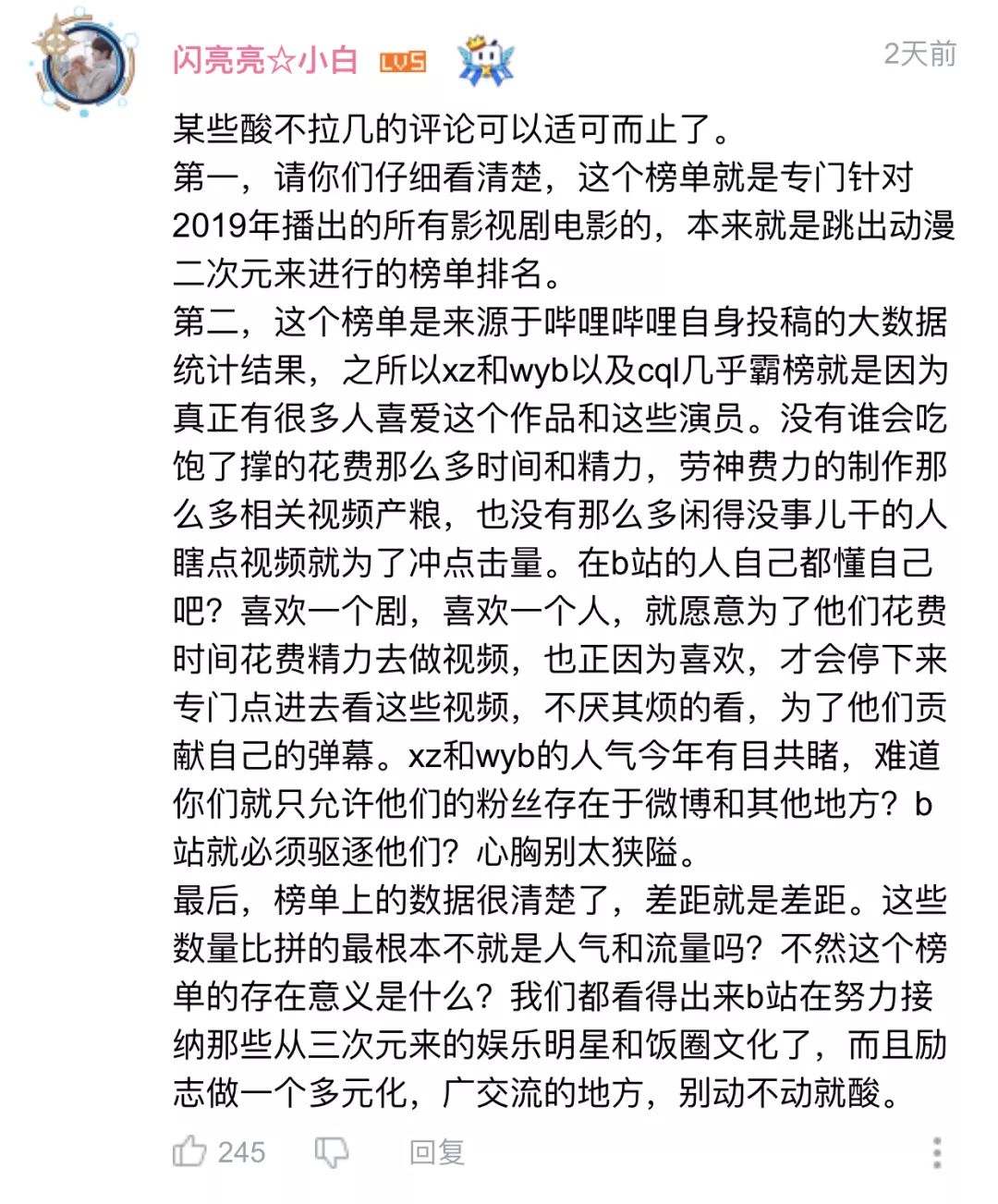 但理性来看,例如肖战和王一博在过去一年中讨论度和人气确实高,粉丝们用爱发电热情高,投稿的作品自然多。所以总的来看,这张大数据榜单没有任何问题,还是有很高的参考价值的。