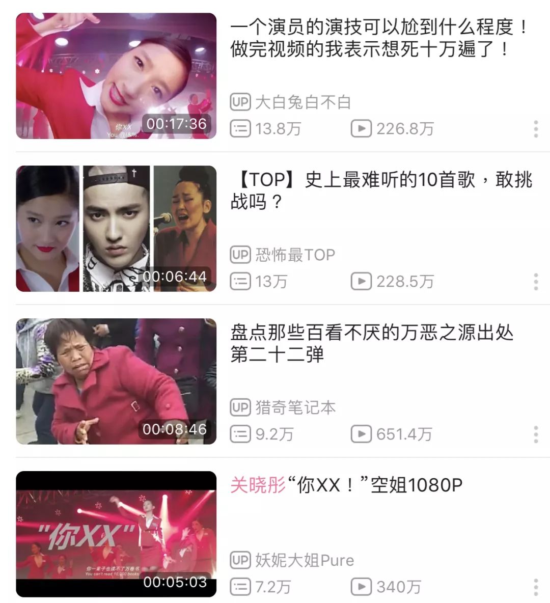 按照弹幕多的排序搜索都是这个画风,尴尬流演技自成一派。
