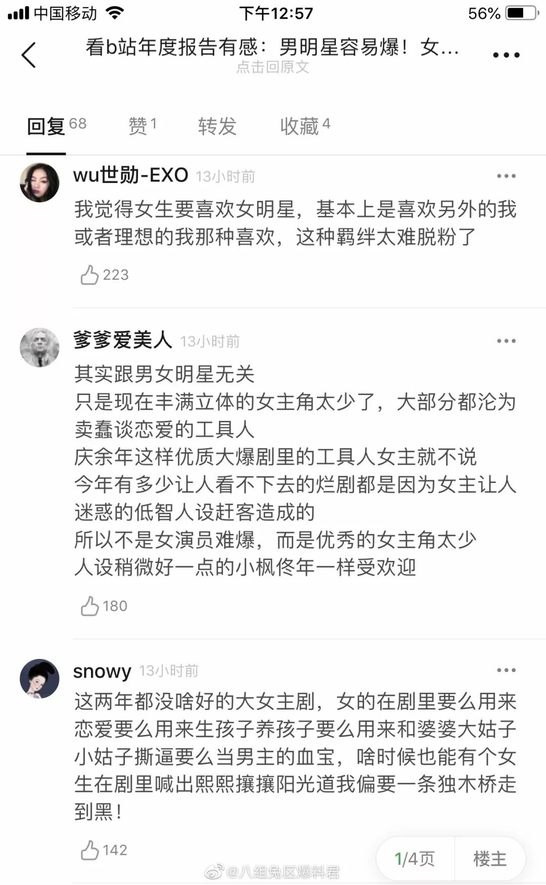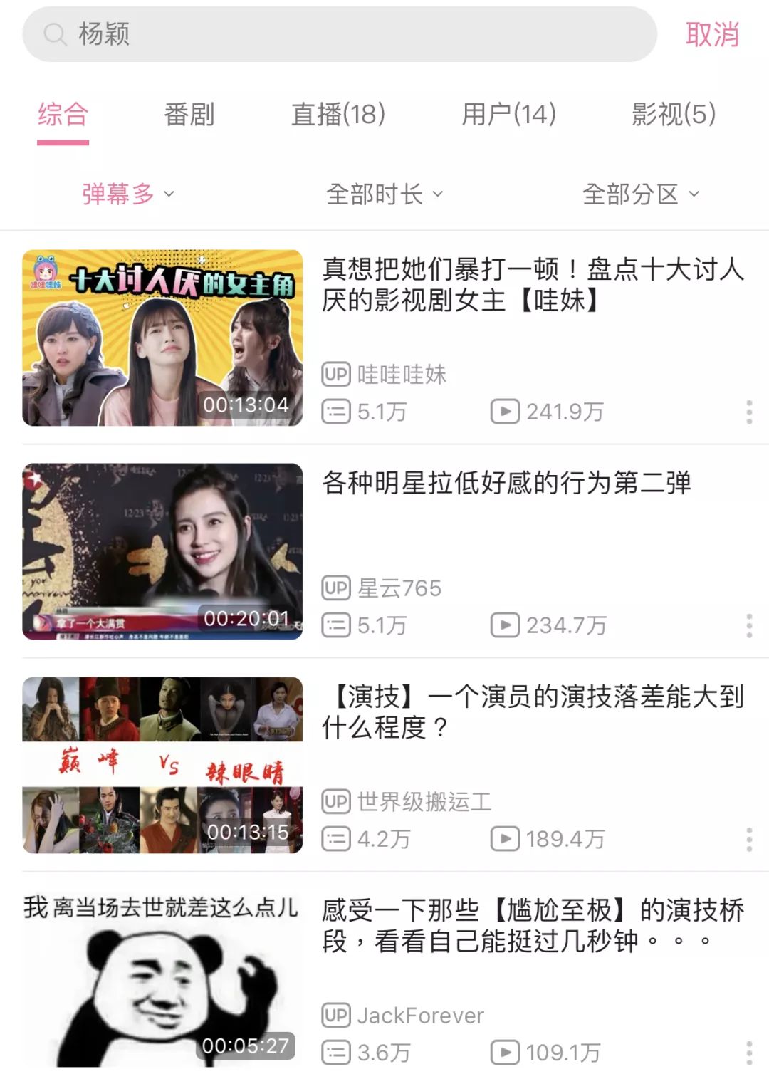 到了热门女演员这儿画风也变得有点不一样了,top2两位也能算是在某种程度上凭借演技征服了b站吧。