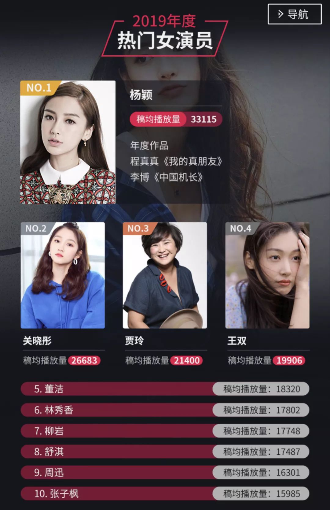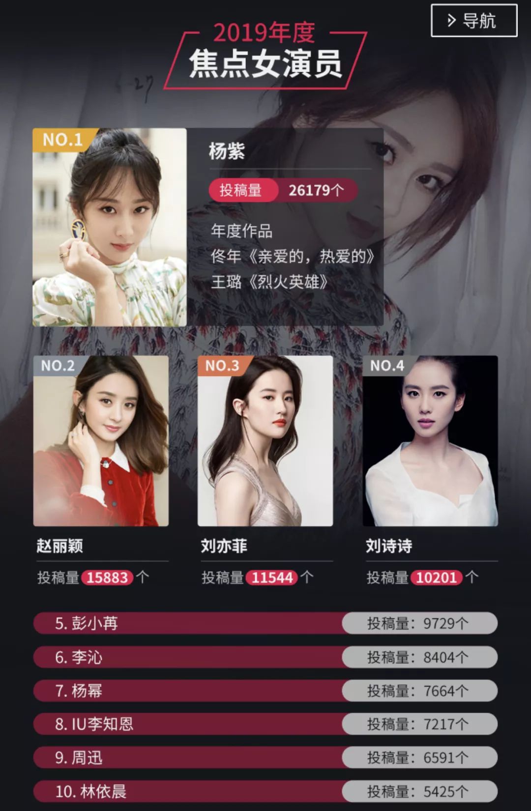 焦点和热门女演员榜同样多是靠着剧集走出来的,像杨紫的《亲爱的热爱的》、赵丽颖的《知否知否》、彭小苒的《东宫》在线观看(✪ω✪)和李沁的《庆余年》都是19年的大火剧。