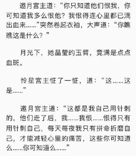 这一段极为带感,甚至有种卖惨就是为了让怜星杀孩子的微妙感,又酷又飒。有网友觉得邀月这样冷傲不应该说出自己的脆弱,但这并不是改编,而是原著本就有的桥段。
