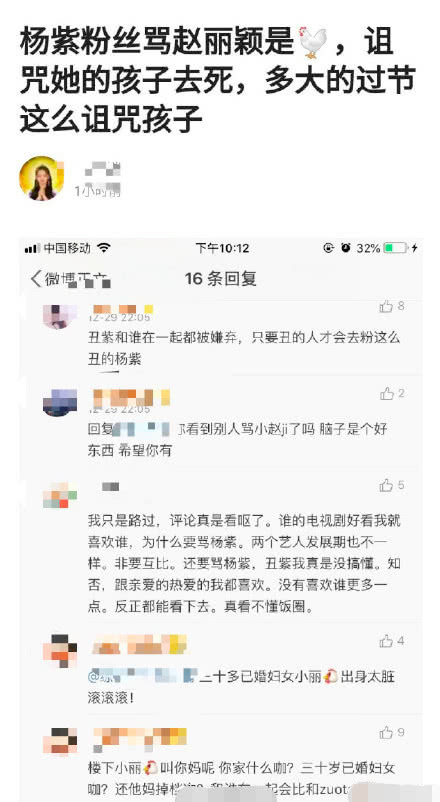 大收视女王碰头自然少不了粉丝之间一争高低的常规操作。不过随着战火愈演愈烈,已经上升到了无法收拾的局面。前几日,网上突然充斥着大量杨紫粉丝人身攻击赵丽颖,还诅咒其孩子的言论。杨紫粉丝此举,引发了不少旁观者的不满,纷纷下场开始怒斥杨紫粉丝言辞过火。