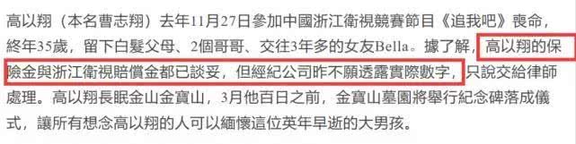 不过,有关赔偿金的问题似乎有了新的进展。就在1月17日,台媒报道高以翔的保险金以及浙江卫视的赔偿金已经谈妥,虽然高以翔的经纪公司始终不肯透露具体的数目,只说交由律师处理,但这件事的处理结果终究还算是令人满意的。