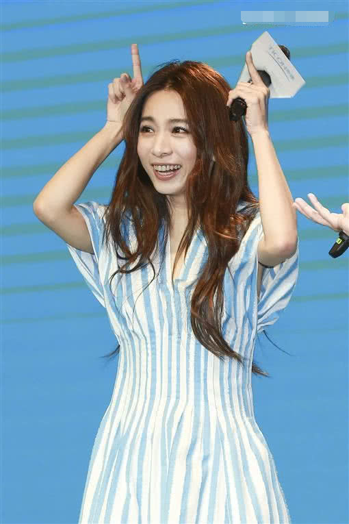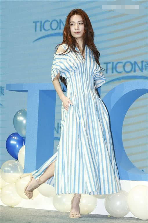 1月18日,Hebe亮相某活动,身穿一件白蓝相间长裙,浅色高跟鞋,长发披肩,这身造型既简约又很青春,非常符合Hebe一贯的穿衣风,随性舒适。可能由于跟粉丝见面,Hebe的心情看起来非常好,站在台上满脸的笑意,还摆着pose让粉丝拍照。
