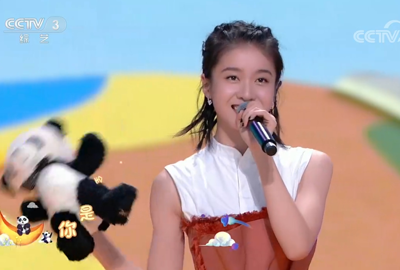 随后,张雪迎作为90后的小花代表唱了一首《圆滚滚的幸福年》。今天张雪迎的造型还算成功,简洁的裙装配青春动感的发型,甜美的歌声充满了整个现场,气氛相当不错。