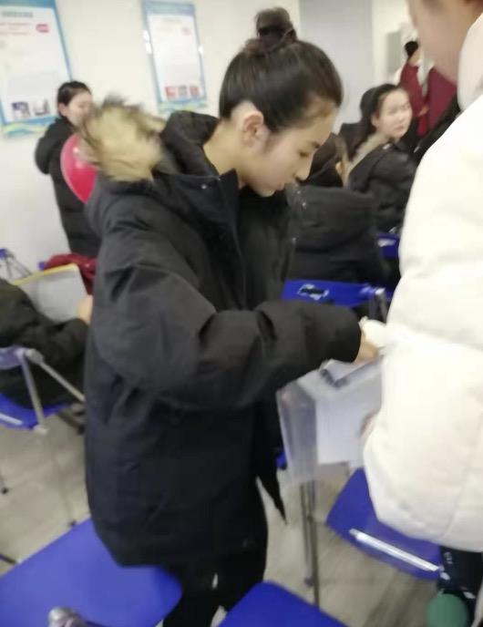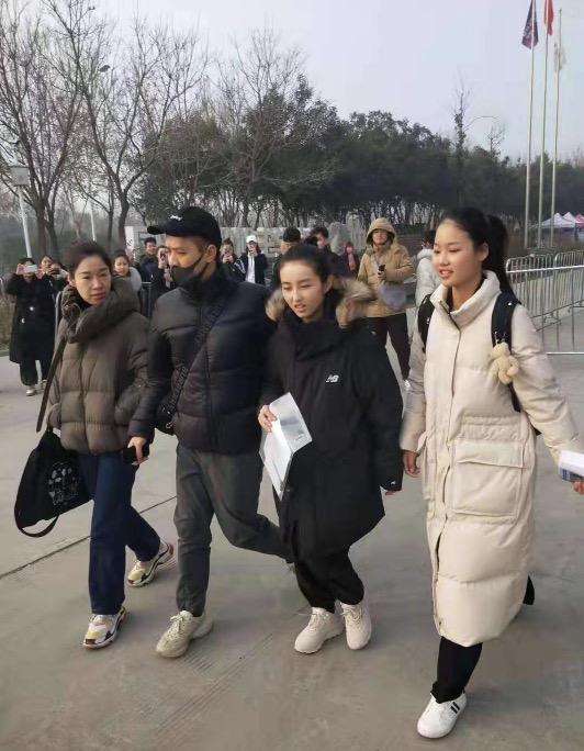 当日张子枫扎着丸子头,穿着黑色羽绒服,打扮相当朴素,还是素颜,丝毫没有大明星的架子,和同学一起参加考试,很有亲和力。