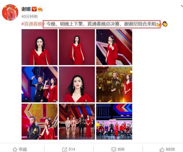 1月18日晚上,谢娜为自己正名了。谢娜微博公布了九张高清图片,说:今晚明晚上下集,直通春晚总决赛,谢谢尼组合来了。尼格买提和谢娜一起担任直通春晚的主持人,谢娜一身落落大方的红色礼服,穿出了雍容华贵的霸气。