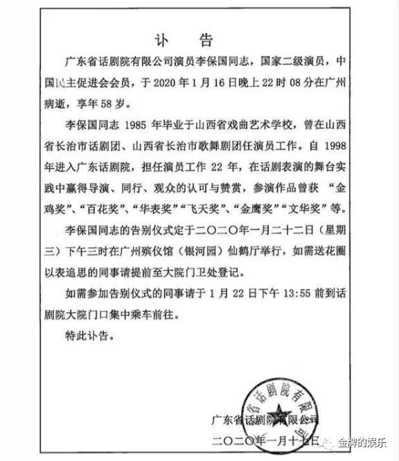 不料,1月17日,李保国所在的公司发表 讣告称,李保国在1月16日晚上22点因病去世,享年 58岁,整整比赵忠祥老师小20岁。
