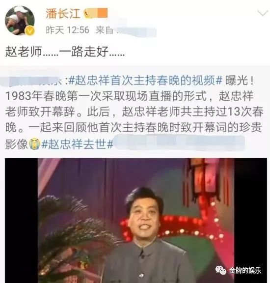 而经常与央视合作,与赵忠祥早已是好友的 潘长江,也转发悼念了好友