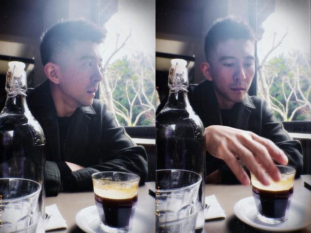前面两张图的修杰楷正在喝咖啡,穿着风衣,时而看看窗外,时而拿起杯子,表情看起来很深沉,当然这无疑是装出来的,大家早就看腻了,于是才有了后面的表情包,做真实的自己难道不好吗?