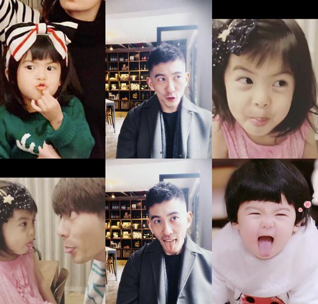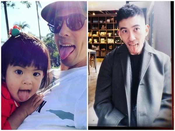 波妞经常对着镜头吐舌卖萌,修杰楷也做出同款表情,两个女儿眼睛这么大,绝对有修杰楷的功劳!不过大人吐舌还是不如小朋友来得可爱!