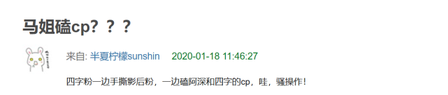 然而,就在1月18日,有网友发现易烊千玺粉丝并非不支持易烊千玺谈恋爱,只不过不希望对象是周冬雨而已。易烊千玺粉丝一边手撕周冬雨粉丝,一边又狂磕易烊千玺和阿深的CP,这番操作实在让人看不懂。