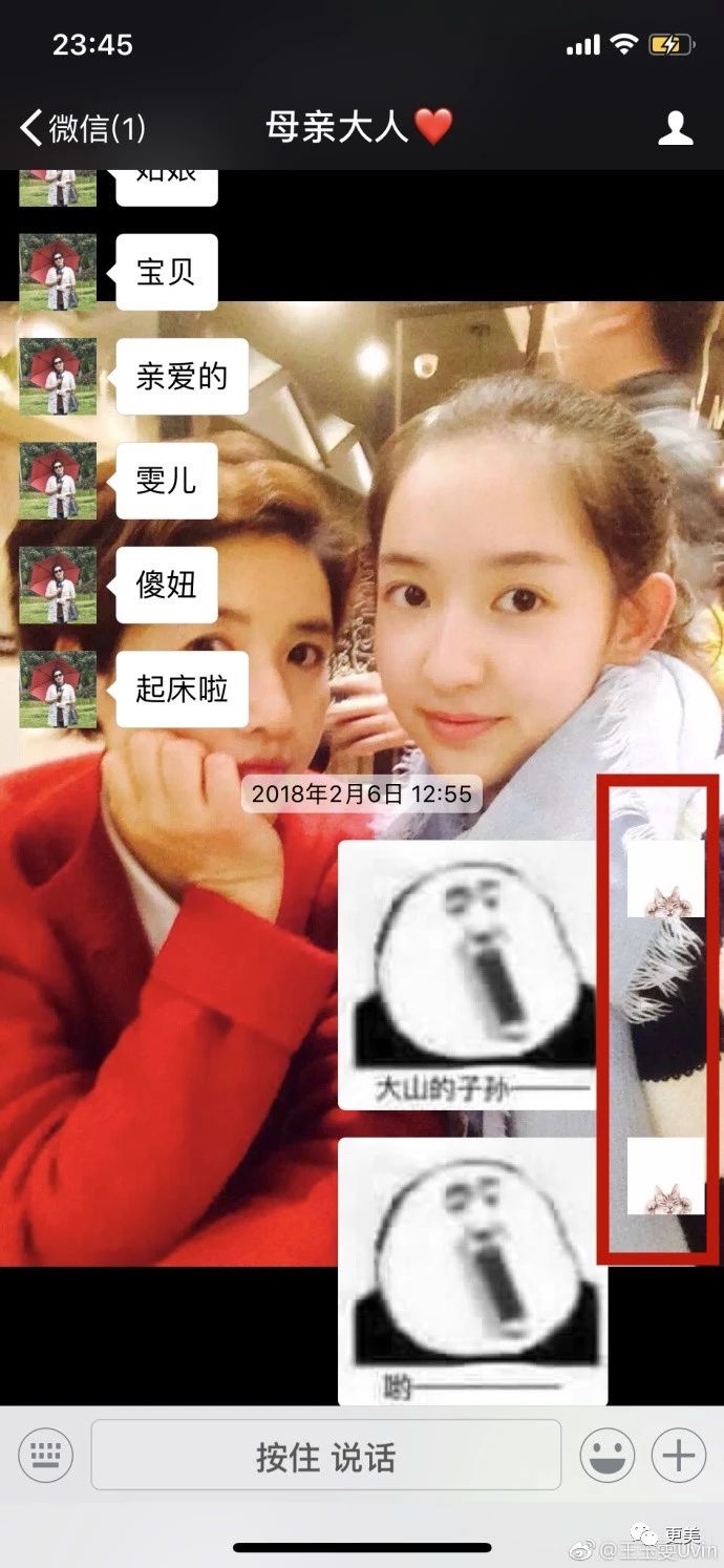 有网友爆料说对方是一个叫王玉雯的女演员。所长对比了王玉雯微博发的和妈妈的聊天记录,可以看出头像和被拍的照片中也一样。
