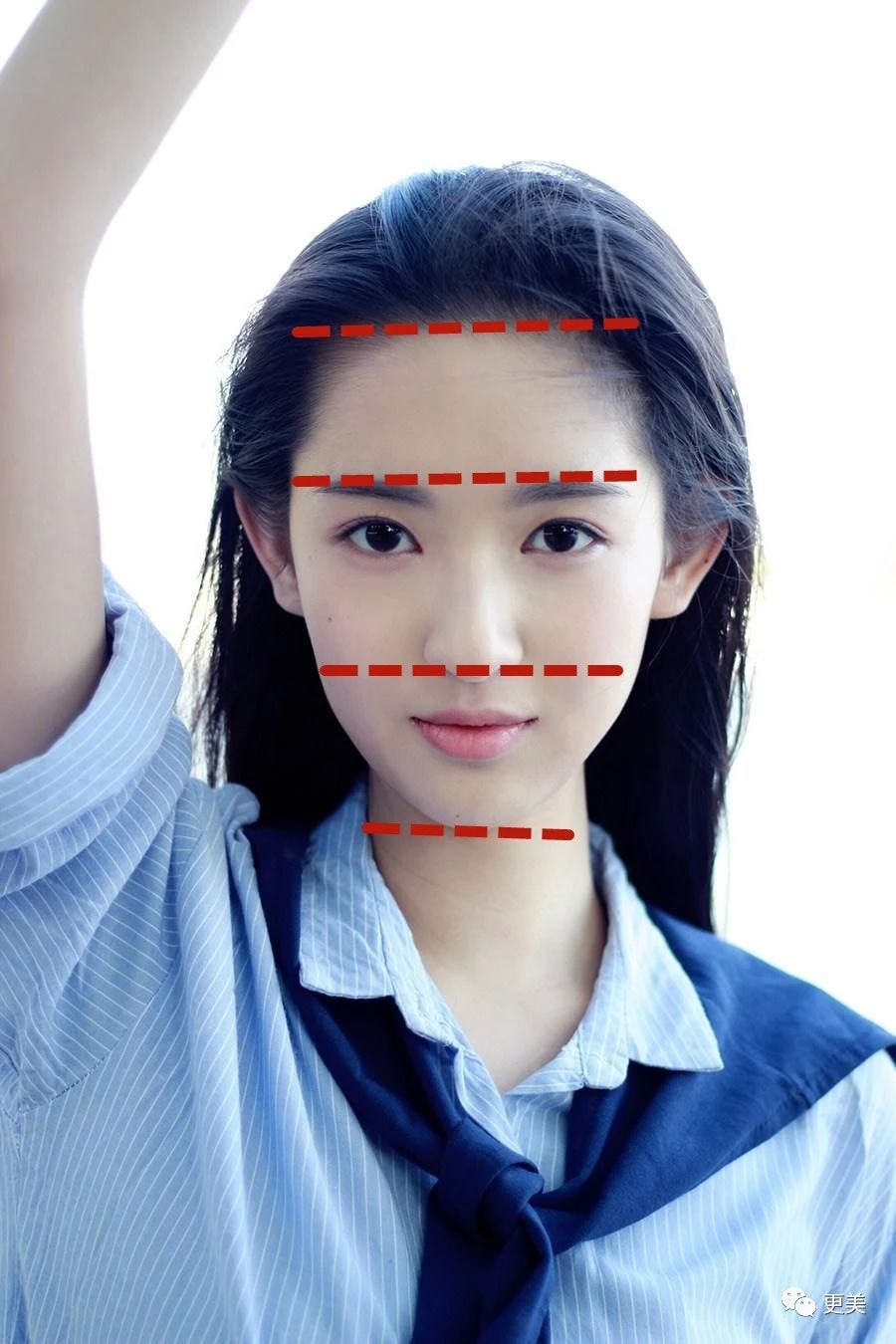 三庭比例接近1:1.1:1.1,中下庭比较长,较短的额头不太饱满,显得有些成熟。