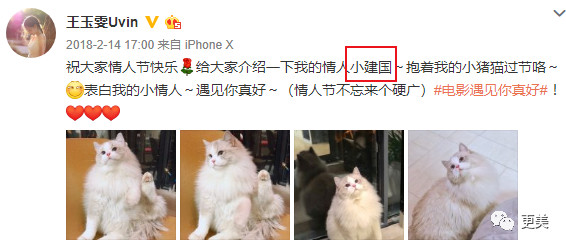 猫的名字也很像,肖战的叫“坚果”,女生的猫叫“建国”。