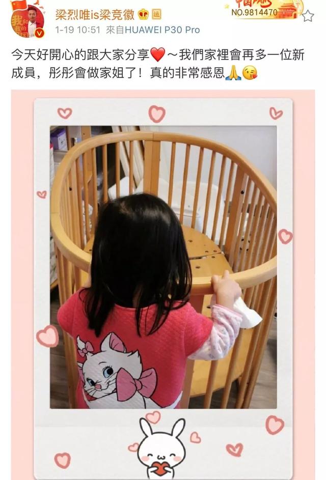 TVB男艺人黄浩然的太太莫家嘉,在社交平台分享跟2个孕妇的合照,分别是应采儿与梁竞徽太太Tina。艺人梁競徽和太太在2017年生下女儿彤彤,想不到三年后她又怀孕了。而梁競徽今天也在社交平台上传一张大女儿看着摇篮床的照片,表示:“今天好开心跟大家分享,我们家里会再多一位新成员,彤彤会做家姐了,真的非常感恩。”