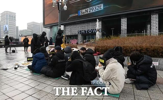 4、EXO粉丝在SM公司门口拉横幅静坐 要求金钟大退出组合