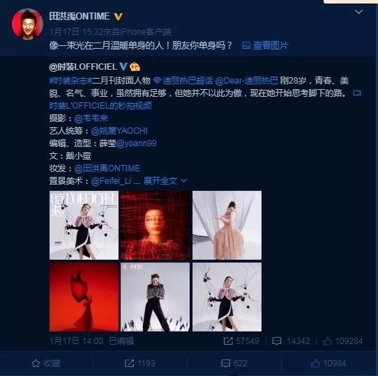 近日,迪丽热巴被曝和同剧的黄景瑜疑似假戏真做,更被拍到她深夜和男方一起回家过夜,两人绯闻闹得沸沸扬扬。而热巴的化妆师日前转发她的新照时,一番话似乎在回应她的感情状态,“像一束光在二月温暖单身的人!朋友你单身吗?” 化妆师发文后,“单身”2字引起热议,粉丝纷纷留言:“谢谢田老师,间接帮我们小热巴辟谣了。”