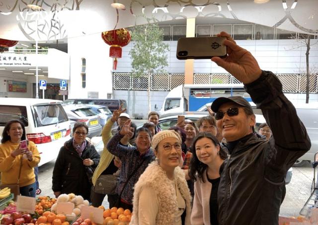 而在超市门口遇到了更多的粉丝,周润发则拿起手机继续与粉丝们一起合照,亲和力满满啊。这些粉丝年纪还都蛮大的,有些已是耄耋老人。不过粉丝没有年龄界限,都是粉丝。