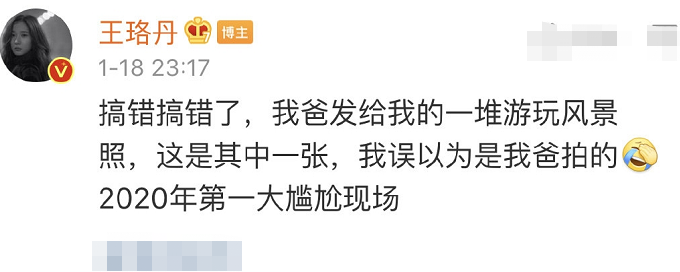 不过,不同点在于一人是有意为之,而一人是无意之举。王珞丹在得知自己犯错后急忙删除动态,并回应此事,对自己的行为进行道歉。王珞丹的道歉态度非常诚恳,她解释父亲为自己发来一堆旅游照,这是其中的一张,是自己错把照片误认为是父亲的作品,还不忘自侃这件事是2020年第一大尴尬现场。